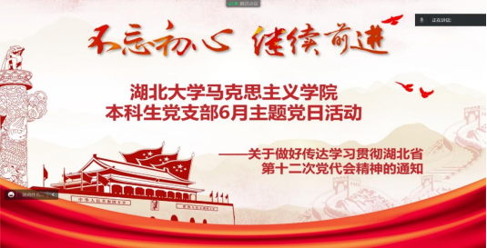 6月29日,太阳成集团tyc33455cc官网本科生党支部开展了题为“学习贯彻湖北省第十二次党代会精神”的线上主题党日活动。本次会议由宣传委员刘欣悦主持。