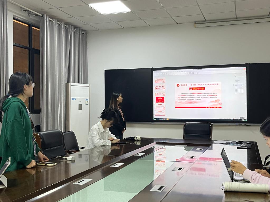 张靖奇同志和汪晴同志分享了各自的学习感悟。张靖奇同志表示作为思政人,要深刻学习习近平文化思想,在未来参加工作后将理论付诸于实践。汪晴同志在学习后分享:“习近平总书记在新的历史节点上强调推动我国文化繁荣,给我们坚定了坚实的文化力量。我们要深刻学习习近平文化思想,不断开创文化新局面。”最后,在支部书记的带领下全体党员举起右拳,庄严宣誓,重温了入党誓词。