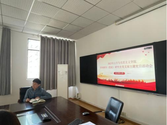 11月17日下午,公司学科教学(思政)研究生党支部在公司五楼会议室以“线上+线下”相结合的形式开展十一月主题党日活动。支部全体党员参加,活动由支部宣传委员翦美玲同志主持。
