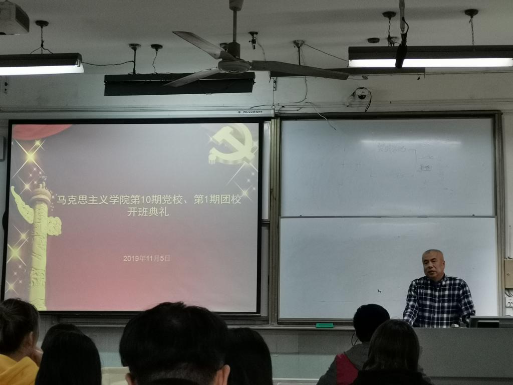11月5日下午2点10分,太阳成集团tyc33455cc官网第十期党校暨第一期团校开班典礼在教二210教室隆重举行,学公司党委书记、党校董事长汤德森出席典礼,学公司党委副书记、党校副董事长王雄及院团委书记邹浩出席开班典礼,王雄主持开班典礼。