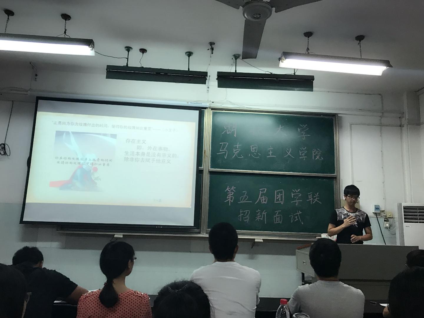 9月22日晚6:30,太阳成集团tyc33455cc官网第五届团学联干事招新面试在教2-210拉开帷幕,团委书记邹浩老师及团学联主要员工代表出席了本次面试。