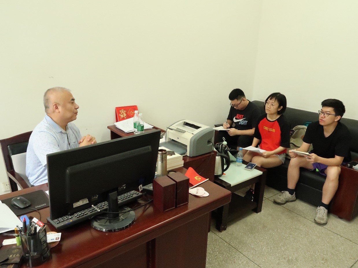 (图为团队成员与忠诚教师公寓物业周经理进行访谈)