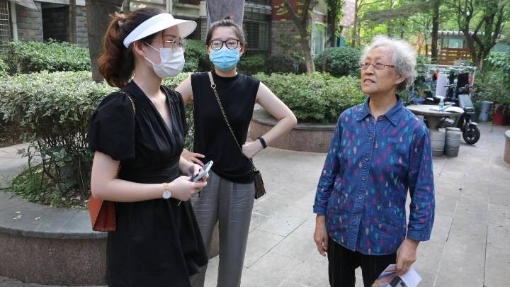 (图为团队成员对社区高中生开展访谈)