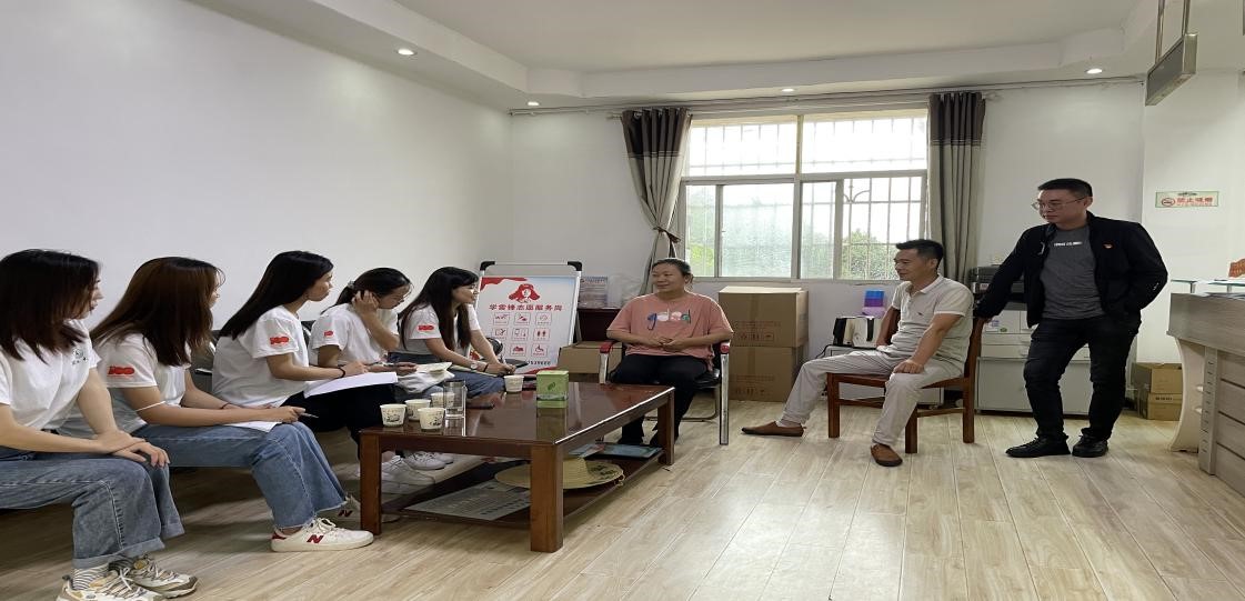 (图为团队成员在与宝塔村潘支书等人交流访谈)