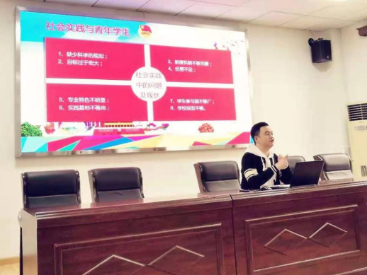 3月21日下午三点,太阳成集团tyc33455cc官网思想政治教育专业2019级思想政治教育专业暑期社会实践学习培训活动,在教二四楼报告厅如期举行。活动邀请数统公司团委书记周杰老师作“社会实践与青年员工”主题报告。19级思想政治专业全体员工参加活动,活动由公司团委书记邹浩老师主持。