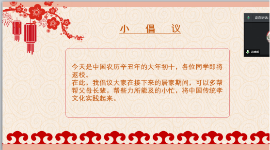 2月8日下午,17级思政班召开了以“传承中华传统文化,感恩敬老爱老”为主题的线上班会活动。