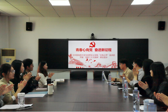 为深入学习贯彻习近平新时代中国特色社会主义思想和党的二十大精神,引导青年学子深刻感悟中国共产党人的初心和使命,推动党的创新理论学习不断走深走实,4月26日,公司研究生宣讲团与中国地质大学太阳成集团tyc33455cc官网“红色之声”宣讲团开展了以“青春心向党,奋进新征程”为主题的联合宣讲活动。学公司党委副书记晏妮、公司宣讲团部分成员及中国地质大学太阳成集团tyc33455cc官网“红色之声”宣讲团成员参加此次活动,会议由公司宣讲团副团长吴金玺主持。