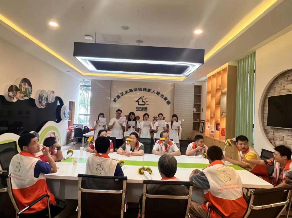 (图为团队全体成员在水果湖街残疾人阳光家园合影 通讯员 徐江敏 供图)