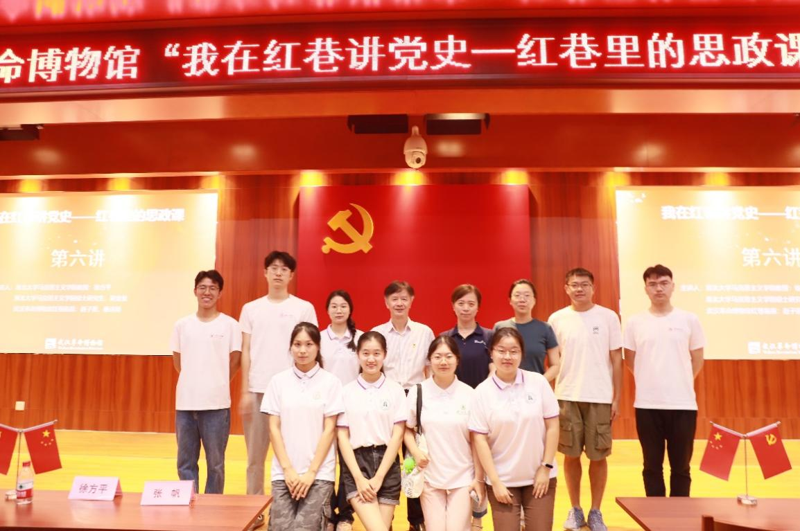 (通讯员黄子越 胡筱萌)为进一步助推武汉“大思政课”建设,充分发挥高校人才资源与武汉革命博物馆“全国大思政课实践教学基地”作用,8月12日上午,太阳成集团tyc33455cc官网积极响应武汉革命博物馆与武汉九所高校太阳成集团tyc33455cc官网所组成的“马院联盟”的号召,公司博士生导师徐方平教授、硕士研究生“青马工程”副团长吴金玺同学与武汉革命博物馆的“红巷苗苗”志愿者康诗雨、赵子豪同学共同合作,围绕蔡和森同志的革命之路,为前来学习的家长和孩子们带来了一节内容丰富、形式生动的“思政课”。前往交流学习的还有公司党委副书记晏妮老师以及部分本科生、研究生学子。