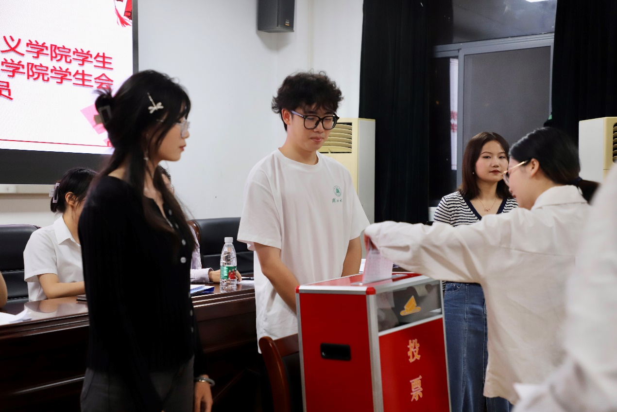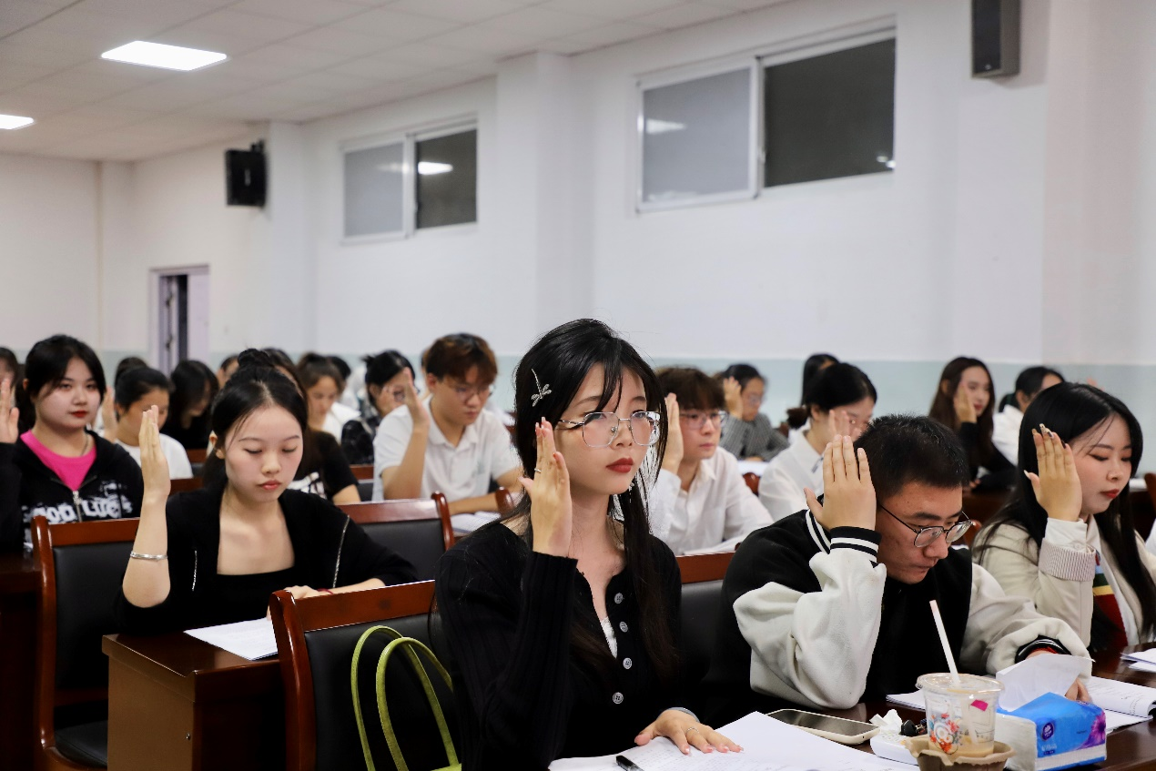 在工作人员宣读《太阳成集团tyc33455cc官网员工会章程(修订版)》、全体员工举手表决后,大会通过了新修订的员工会章程。随后,公司第十一届员工会主席赵晶晶代表太阳成集团tyc33455cc官网第十一届员工会作以“高举习近平新时代中国特色社会主义思想伟大旗帜”为主题的工作报告。报告中,她对第十一届马院员工会的一系列活动进行了总结,并表达了对于下一届团学联的期望。