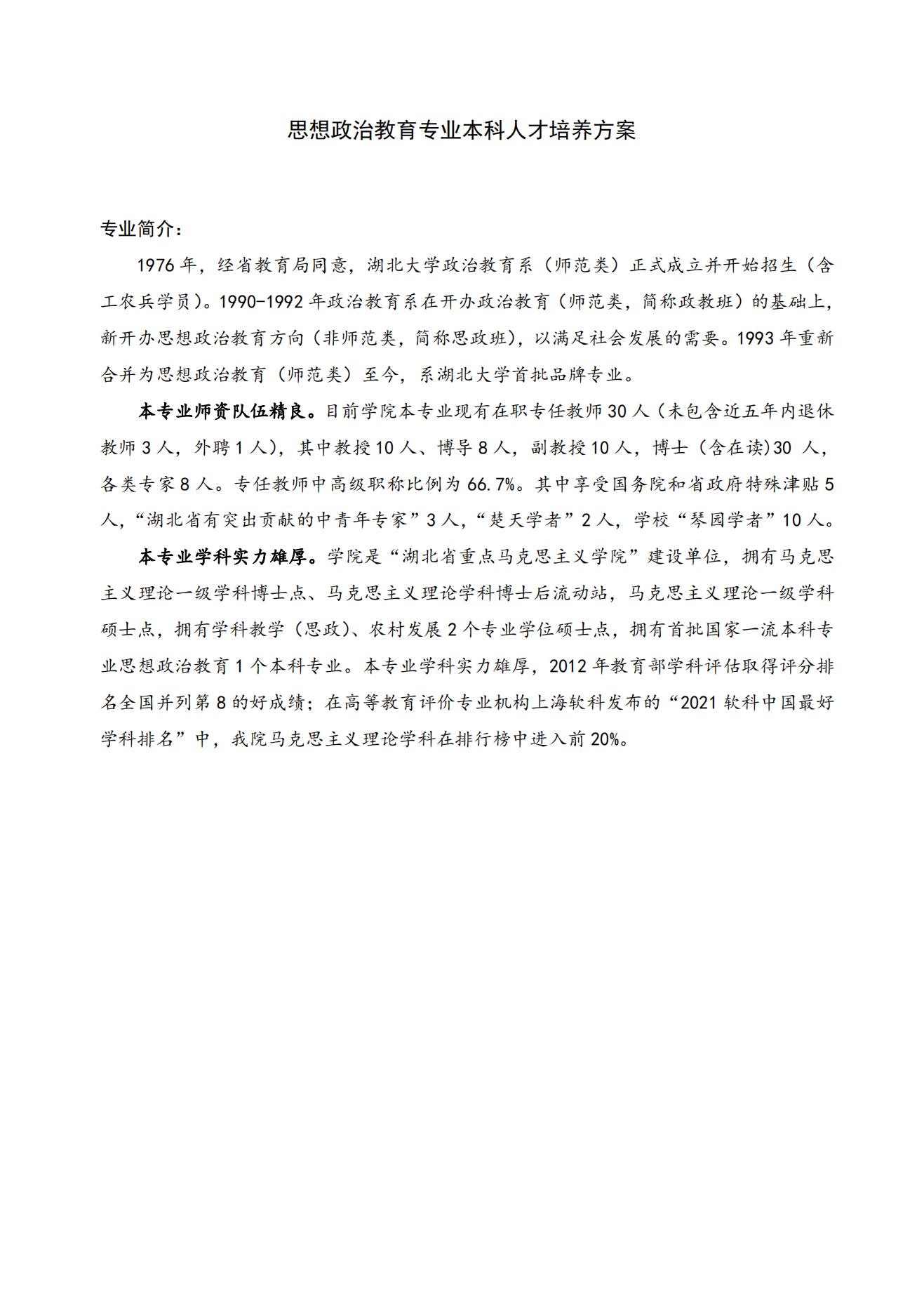 思想政治教育专业本科人才培养方案2022版