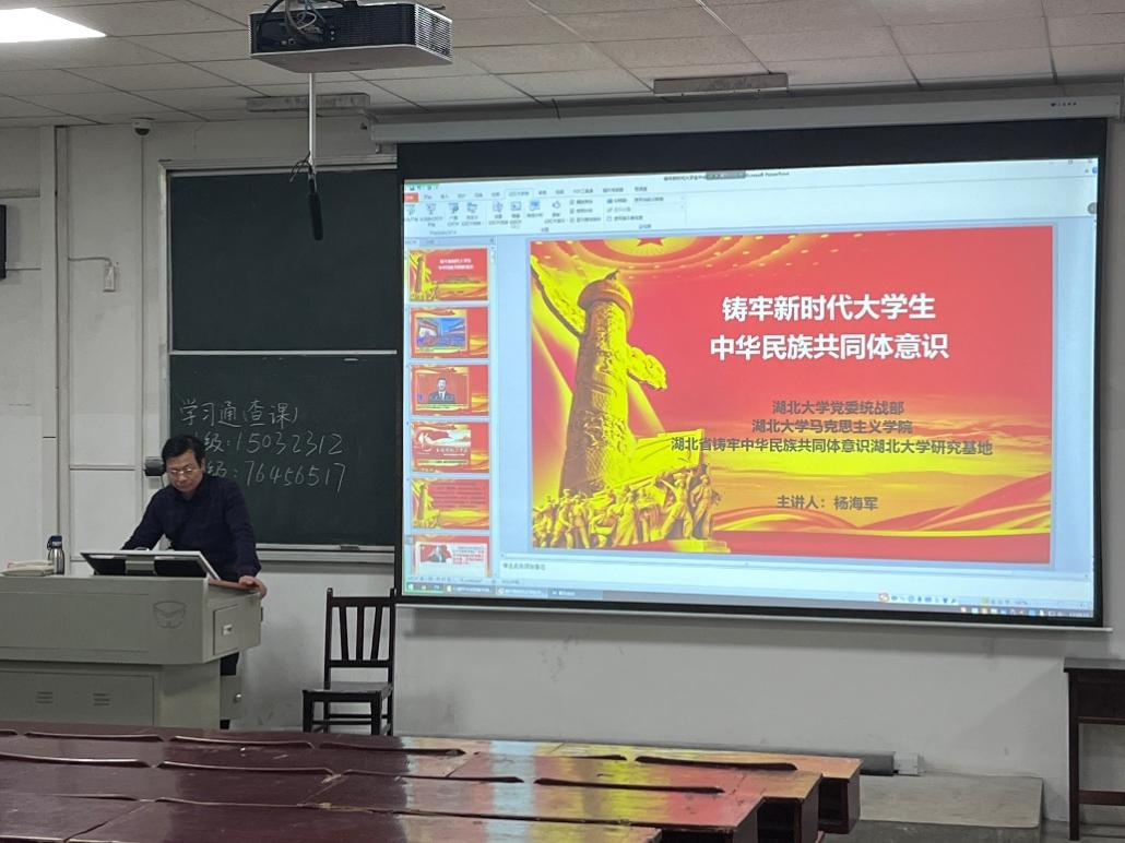 11月23日下午,太阳成集团tyc33455cc官网副教授杨海军老师在三号教学楼201教室为公司思想政治教育专业19级、20级、21级本科生讲授题为“铸牢新时代老员工中华民族共同体意识”的形势与政策课。