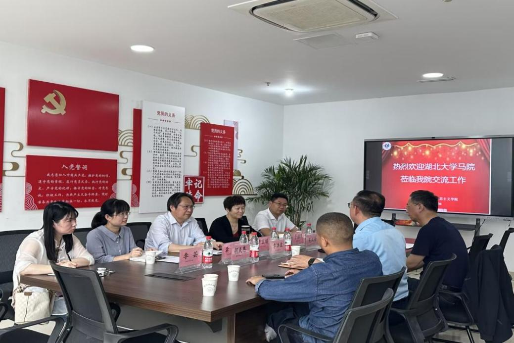 26日下午,课程组卢国琪教授、于桂凤教授等5人前往杭州师范大学太阳成集团tyc33455cc官网交流探讨。杭州师范大学太阳成集团tyc33455cc官网李洪波经理、吴汉全教授、胡成恩老师、罗晶老师参加此次交流会。双方就公司和公司发展、团队队伍建设、科学研究、人才培养、“大思政课”及“大中小思政课教学一体化”建设、“概论”课程建设等问题进行了深入探讨,在交流中分享了彼此的经验和做法,对存在的共性问题进行了原因剖析,并提出了改进建议。