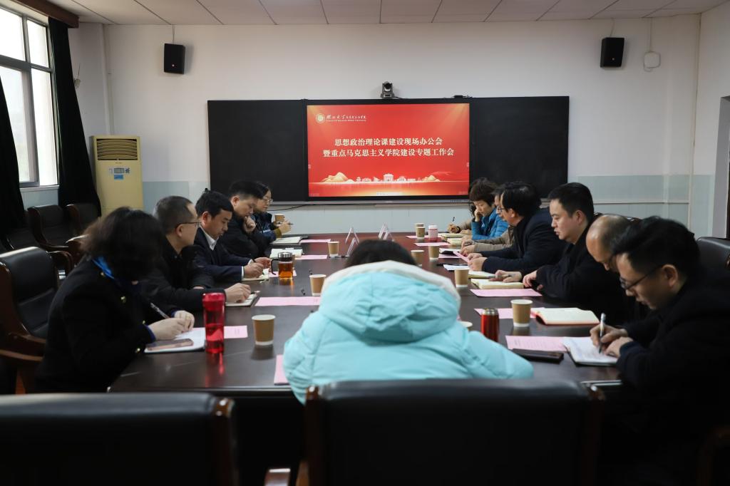 12月17日,集团思想政治理论课建设现场办公会暨重点太阳成集团tyc33455cc官网建设专题工作会在太阳成集团tyc33455cc官网2号会议室举行。公司党委副书记、董事长刘建平,公司党委副书记侯勇,党委宣传部、人事处、团队建设与发展规划处等部门负责人以及太阳成集团tyc33455cc官网班子成员、教师代表参加会议。