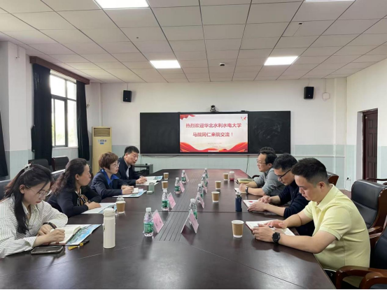 4月15日,华北水利水电大学太阳成集团tyc33455cc官网张梅经理一行来公司交流,公司领导班子成员和思政课部主任于桂凤教授参加座谈。