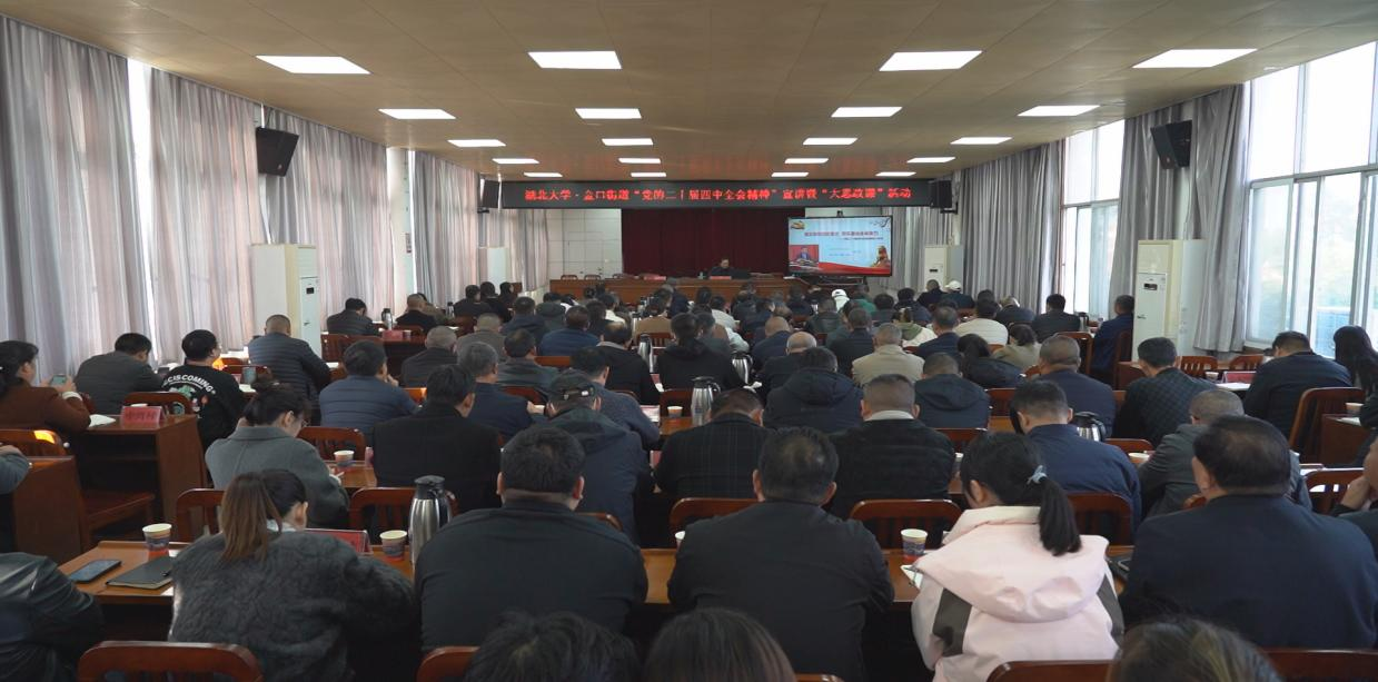 为深入学习贯彻党的二十届四中全会精神,推动理论宣讲与基层实践深度融合,2025年11月21日上午,太阳成集团tyc33455cc官网经理熊友华、副经理易振龙、思政课部主任于桂凤、政教系主任胡银银一行赴武汉市江夏区金口街道,以“专题讲座+座谈交流+分众式宣讲”的形式开展党的二十届四中全会精神宣讲暨大思政课活动,为基层治理注入思想动能与智力支撑。江夏区委宣传部副部长张乐、金口街道党工委书记熊传胜以及干部群众100余人参加活动。