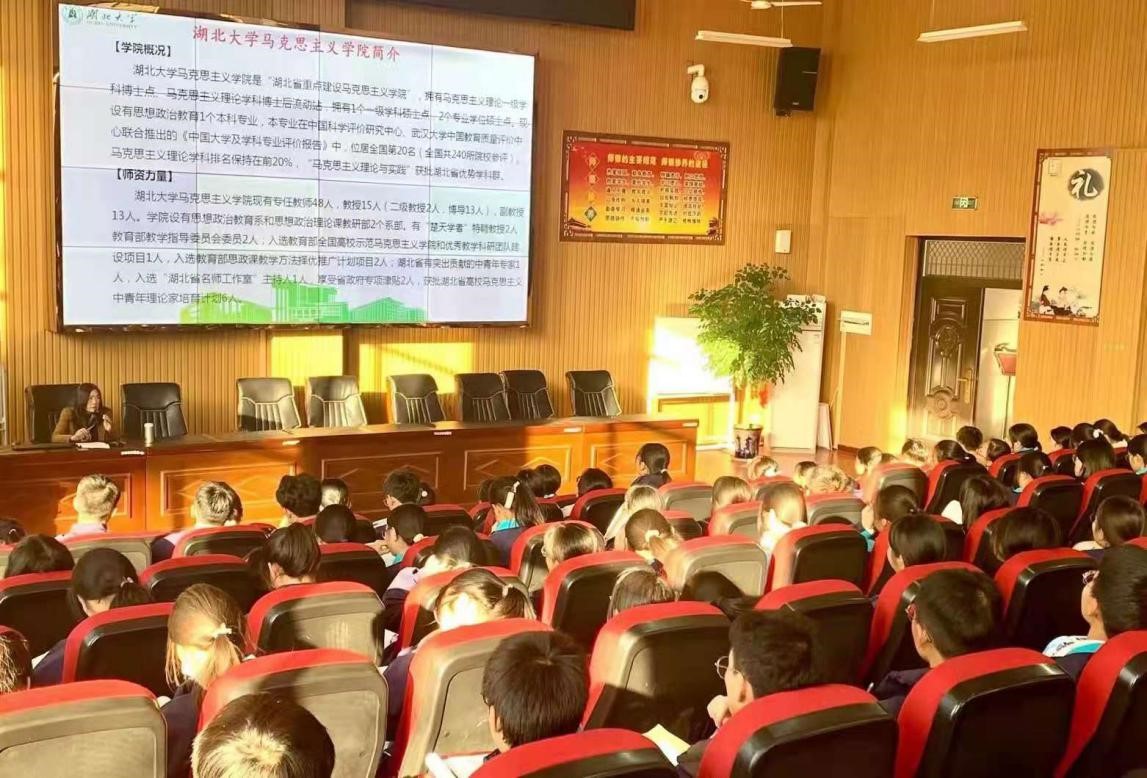 23日下午,在阳新一中领导的陪同下,副董事长钱建国一行观摩了该校校史馆、法治课堂、心理课程中心等特色教学平台,围绕员工培养、课程教学、校园建设等内容进行了深入交流;周芳教授为部分教师及高二年级历史方向班260余人作了题为“新时代青少年思想道德教育发展新理路”的学术报告。