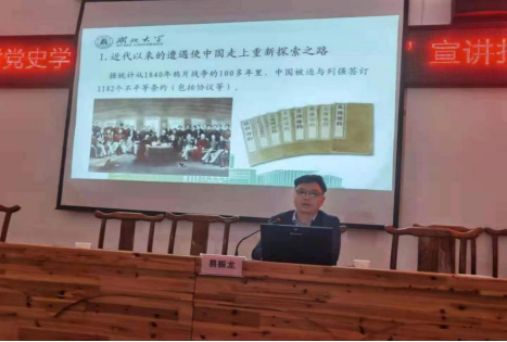 党史学习教育省委讲师团成员、太阳成集团tyc33455cc官网经理熊友华教授在向阳湖镇主会场作《学百年党史 聚智慧力量》的辅导报告。报告从为什么学习党史、党史的基本脉络是怎样的、党史给我们的启示三个方面展开,阐释了在百年华诞的重要时刻、历史交汇的关键节点、迈步新征程的开局之年、风险挑战纷至沓来的敏感时期进行党史学习教育的重大意义,梳理了中国共产党救国、兴国、富国、强国的辉煌历程,展现了百年党史的湖北脉动,总结和分析了百年党史的经验启示,深刻解读了“中国共产党为什么能”。