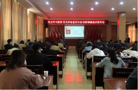 4月23日,为深入开展党史学习教育,推动党史学习教育深入群众、深入基层、深入人心,助推乡村振兴,太阳成集团tyc33455cc官网“百马行动”宣讲团,赴咸宁市咸安区向阳湖镇“理论热点面对面”示范点开展党史宣讲活动。公司党委书记谢红星,宣传部常务副部长刘靖君,太阳成集团tyc33455cc官网经理熊友华以及宣讲团成员徐信华、易振龙、郭劲松、涂用凯,咸宁市委宣传部副部长杨志奇,咸安区委常委、宣传部部长徐珍,咸安区委宣传部副部长熊鸣,向阳湖镇党委副书记、镇长陈伟,纪委书记程文增等200余名党员干部参加了此次宣讲活动。