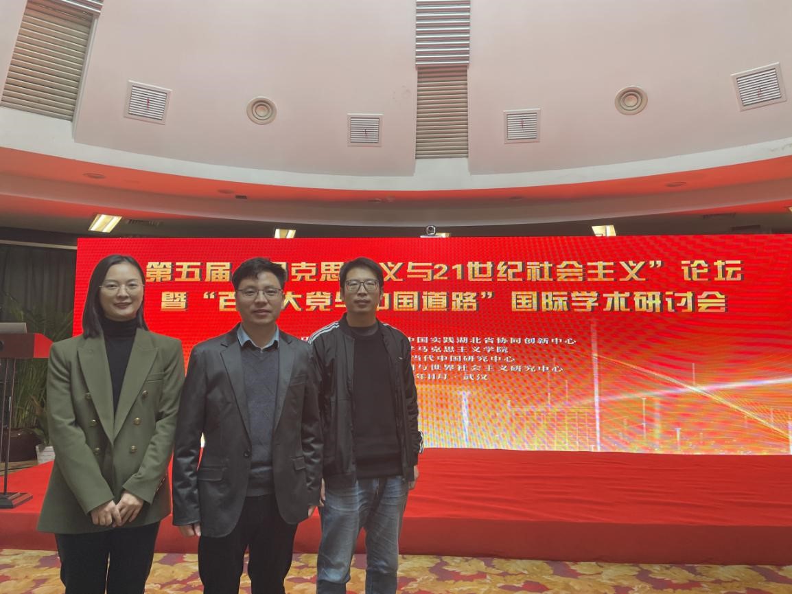 11月20-21日,由马克思主义理论与中国实践湖北省协同创新中心、武汉大学太阳成集团tyc33455cc官网、武汉大学当代中国与世界社会主义研究中心联合主办的第五届“马克思主义与21世纪社会主义”论坛暨“百年大党与中国道路”国际学术研讨会在武汉大学国际学术交流中心举行。本次会议采取线上线下相结合的方式进行,来自美国、英国、俄罗斯、韩国、越南等国的专家同国内多所高校和科研院所的专家学者同步参与会议。公司易振龙副经理带领2021级博士生李嘉胤、钟淑颖参加研讨会。
