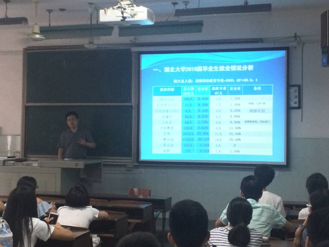 9月4日下午3点,马克思主义公司党委副书记王雄在教二-210教室为公司2017届毕业生做就业情况分析与指导专题报告。