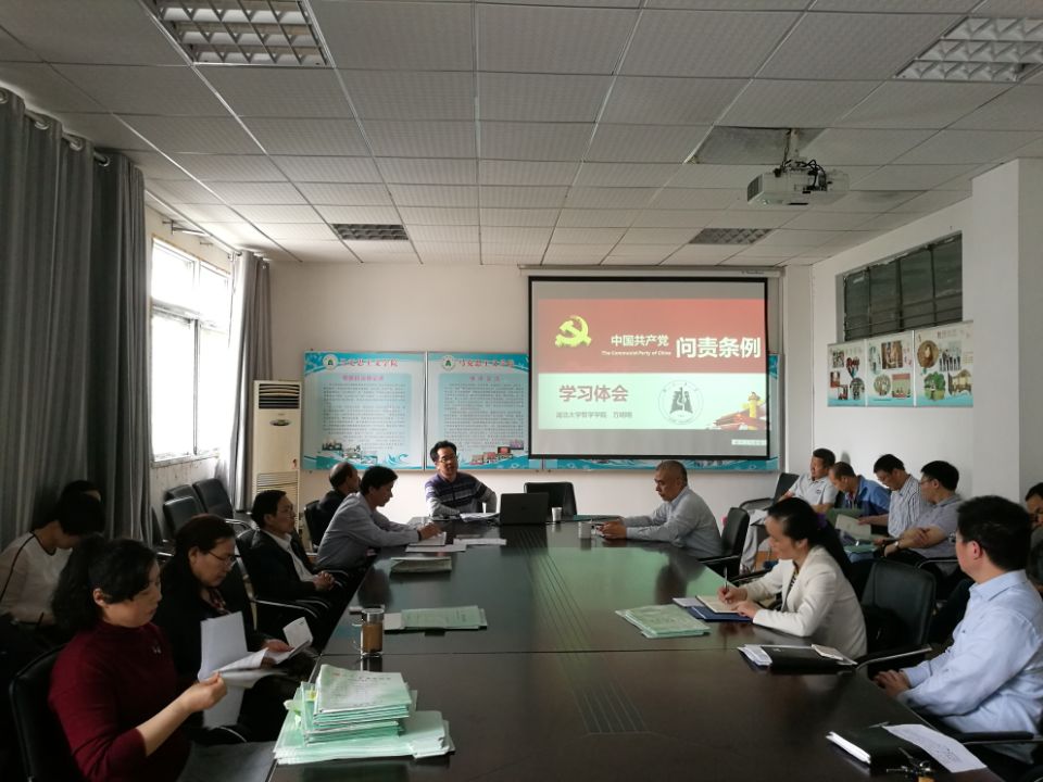 4月19日下午2点,太阳成集团tyc33455cc官网第七期“马克思主义论坛”在公司五楼会议室举行,邀请哲学公司党委书记万明明同志为全院教职工主讲“《中国共产党问责条例》学习体会”,公司党委书记汤德森主持讲座。
