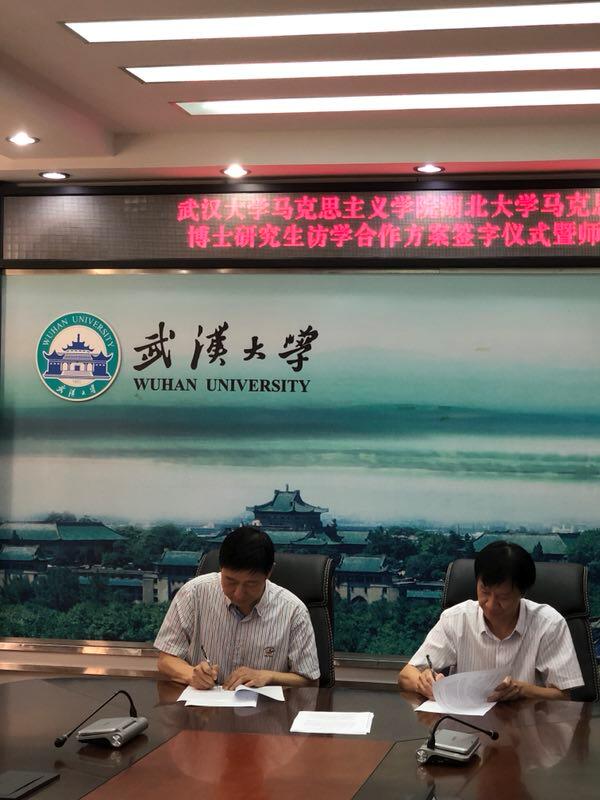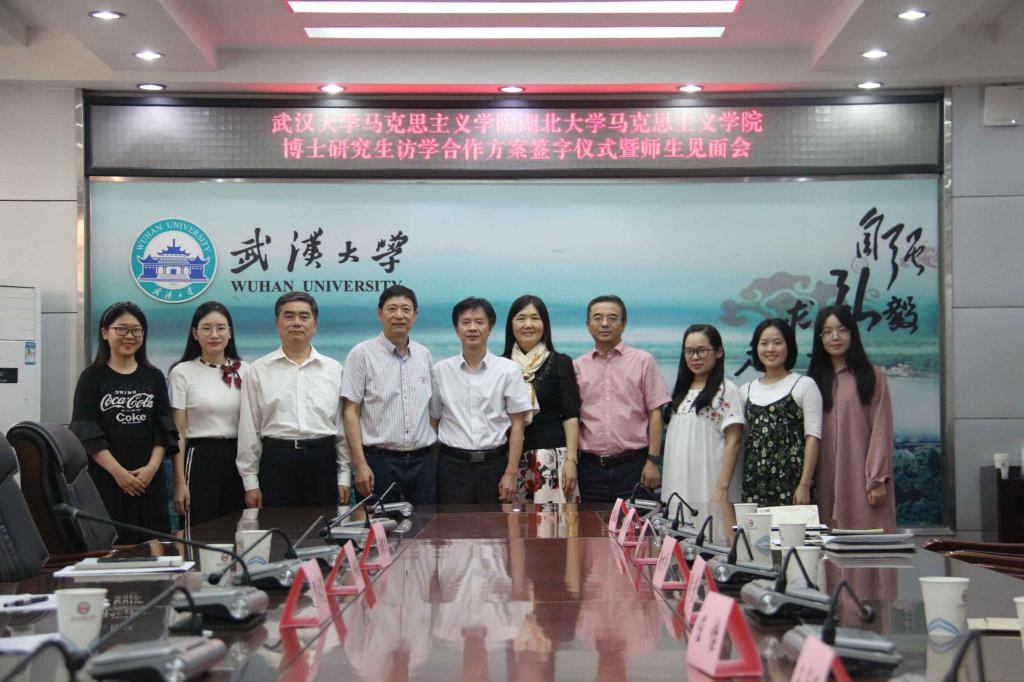 2018年9月28日下午,公司“十年树人”计划博士研究生赴武汉大学访学合作方案签字仪式暨师生见面会,于武汉大学太阳成集团tyc33455cc官网M218会议室顺利举行。出席此次签字仪式暨师生见面会的领导和老师有武汉大学太阳成集团tyc33455cc官网经理,教授、博士生导师佘双好,武汉大学太阳成集团tyc33455cc官网副经理,教授、博士生导师罗永宽,武汉大学太阳成集团tyc33455cc官网马克思主义基本原理学科点负责人,教授、博士生导师袁银传,公司经理,教授、博士生导师徐方平以及公司副经理,教授、博士生导师周芳。员工有公司2016级思想政治教育专业博士研究生程亚勤,2017级马克思主义基本原理专业博士研究生高静、沈钰晶,2018级思想政治教育专业博士研究生任怡以及马克思主义基本原理专业博士研究生王千迁。签字仪式暨师生见面会由武汉大学太阳成集团tyc33455cc官网罗永宽教授主持。