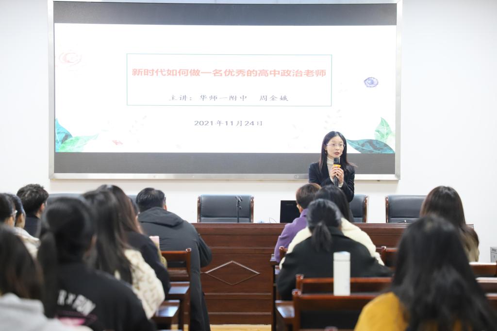姚迎春老师在总结中指出,此次讲座周老师准备充分,给大家带来了教学一线的真实案例,希望同学们在课下,要积极交流探讨,学习名师经验,将讲座中学习到的知识消化吸收,朝着一名优秀中学政治老师的方向努力奋进。