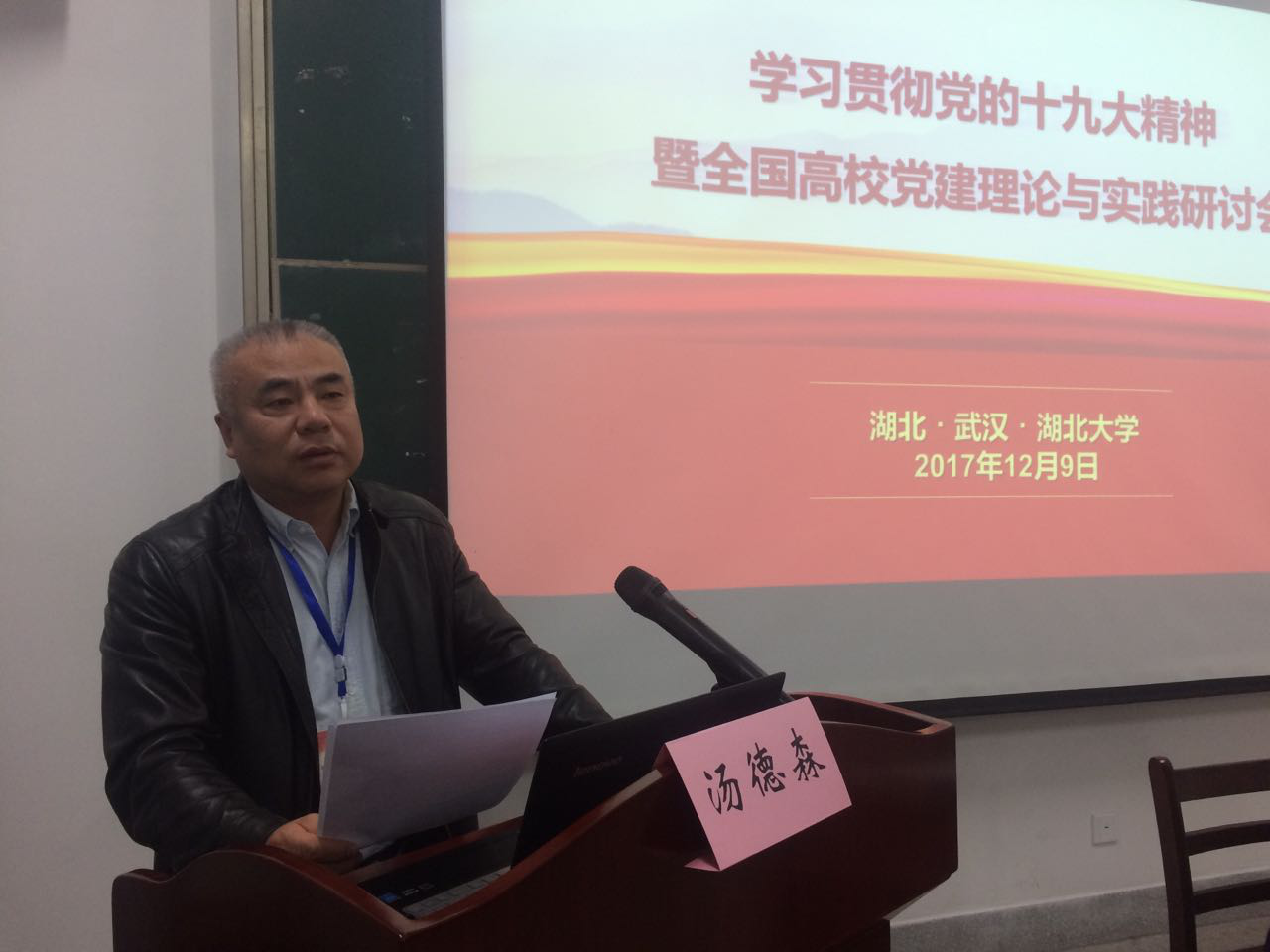 研讨会期间,来自武汉大学的李斌雄教授、北京大学的庄德水教授、湖北中医药大学的陈建华教授、吉林大学的陈松友教授、西南大学的周琪教授、贵州大学的胡芳教授、太阳成集团tyc33455cc官网的贺祥林教授、中南民族大学的刘启春教授等分别以《试论习近平新时代党的建设思想》、《全面从严治党的新时代视角》、《创新高公司党内监督机制》、《习近平新时代党建思想的特征》、《新时代进程中社会主流意识形态建设的逻辑》、《习近平提升党在高校文化领导权的思想》、《思想建党和制度治党同向发力》及《全面从严治党的问题导向》等为题作了主题发言。同时,与会的专家学者还就“学习贯彻党的十九大精神”、“高公司党建与思想政治工作”、“改进和加强高校思想政治理论课公司产品”等主题进行了分组讨论和深入研讨。公司副经理周芳、熊友华教授分别主持了两个分论坛的会议交流和讨论。
