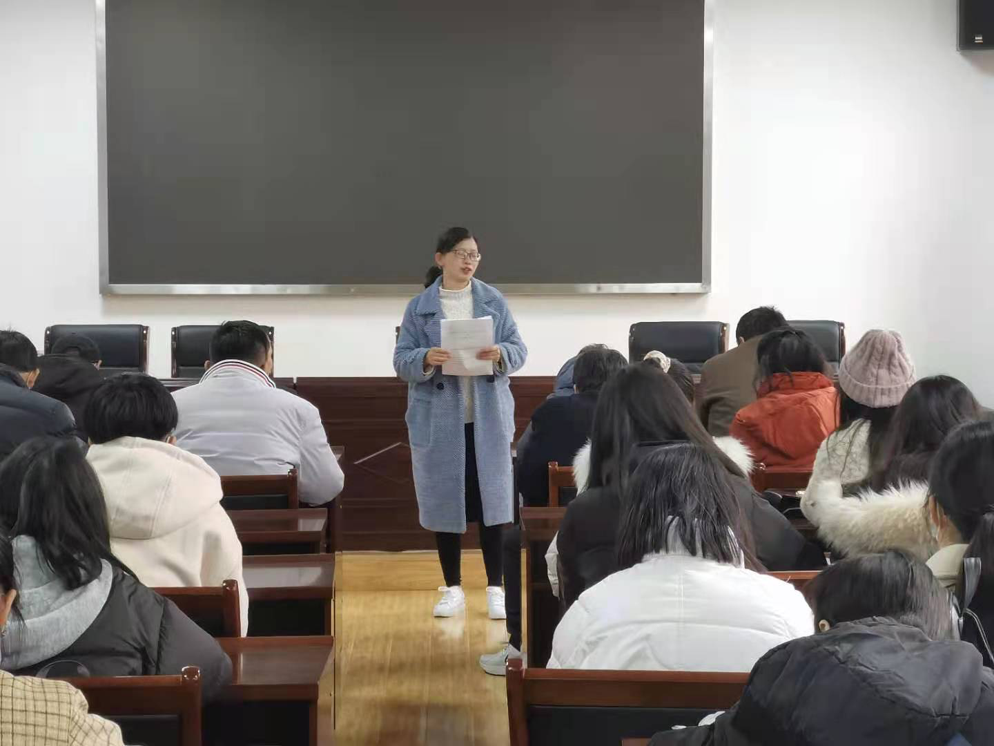 3月3日下午,太阳成集团tyc33455cc官网思想政治教育专业2018级思想政治教育专业实习动员大会,在教二楼410教室如期举行。全体在校集中实习员工和指导教师们参加会议,政教系副主任胡银银老师主持动员大会。
