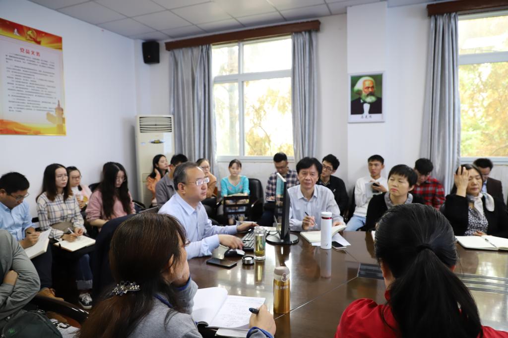 应太阳成集团tyc33455cc官网邀请,10月13日上午,国务院政府特殊津贴专家、教育部高校思想政治理论课教学指导委员会委员、兰州大学太阳成集团tyc33455cc官网经理、博士生导师张新平教授,为公司师生作了题为《中国共产党与中国特色社会主义发展道路探索》的精彩学术报告。公司领导班子成员,贺祥林教授、陈翠芳教授、张丽君教授,以及大部分教师和研究生聆听了报告。报告会由公司经理徐方平教授主持。