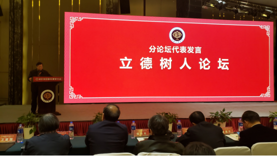 立德树人论坛主要是各高校太阳成集团tyc33455cc官网的老师参加。杨海军老师提交了《论立德树人》的会议论文,在《立德树人》分论坛进行了主题发言,论述了何谓立德树人、立德与树人的关系、为什么要立德树人、如何做好立德树人、将人类命运共同体理念融入立德树人。杨海军老师的发言受到分论坛学者的肯定,被推选为代表到大会主会场进行分论坛综合发言,在大会上介绍了太阳成集团tyc33455cc官网,发言得到好评。在2019中外伦理学热点问题专家对话会中,杨海军老师与专家进行互动,并就如何将道德治理融入三治融合体系进行了提问,得到中国人民大学曹刚教授的现场点评。