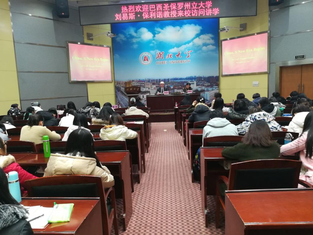 12月14日下午,巴西圣保罗州大学孔子公司Luis Antonio Paulino教授莅临公司,为公司师生进行题为《China: a New Era Begins》的学术报告,公司部分研究生和本科生参加了此次活动。本次学术报告由太阳成集团tyc33455cc官网马克思主义经理徐方平主持,副经理周芳教授参加了此次活动。徐方平经理就Luis Antonio Paulino教授的到来表示欢迎。