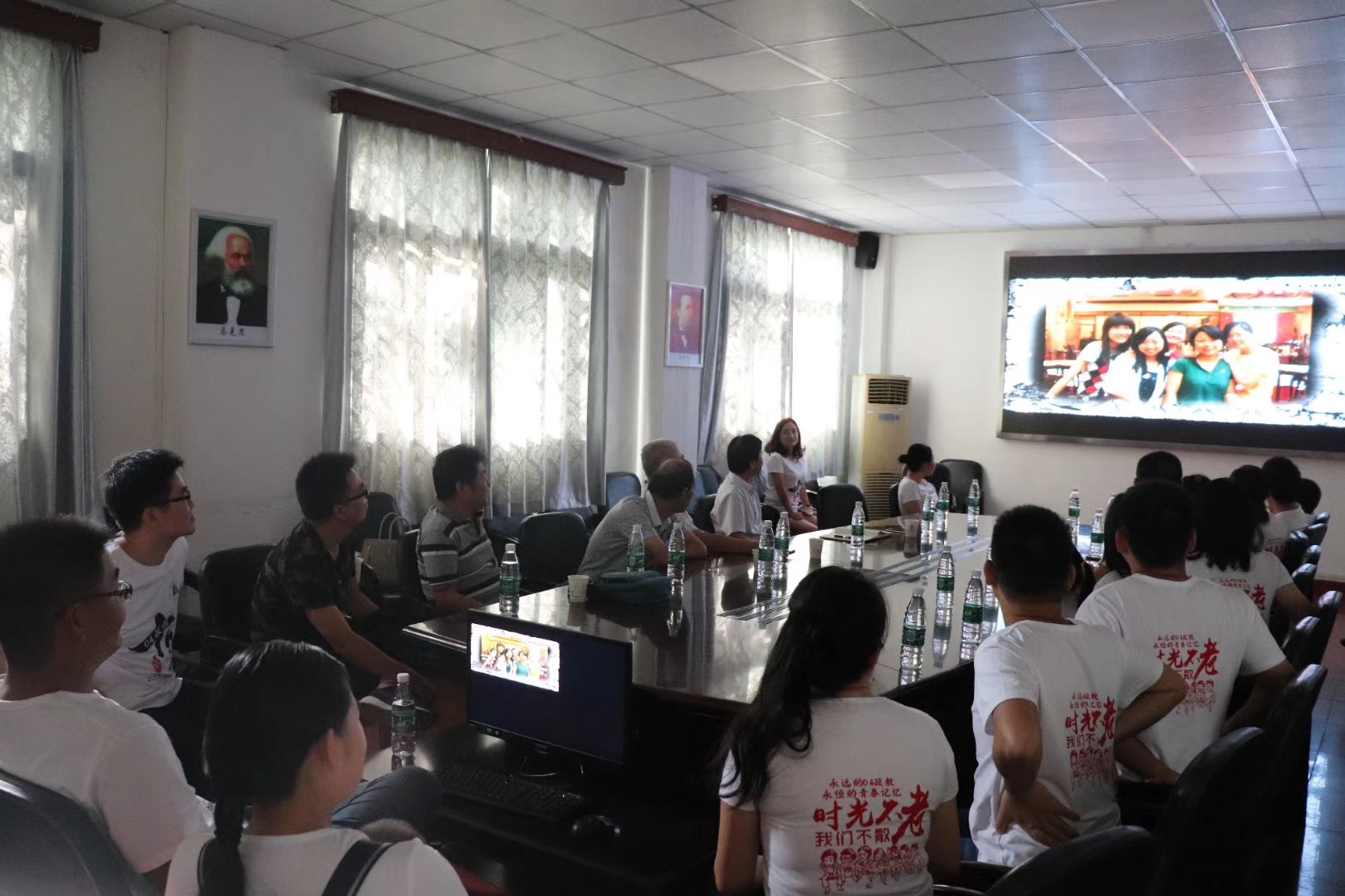 2日下午,座谈会在公司四楼会议室举行,马克思主义公司党委书记汤德森、公司经理徐方平、原班主任郭劲松老师、任课教师代表董立仁老师、贺祥林老师出席座谈会。大家一齐观看了当年留存的照片所制成的电子相册回忆往事。