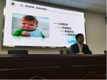 下午3点,新生回到报告厅,聆听公司党委副书记王雄《思想政治教育专业发展》专题讲座。他从团队、就业、考研等多个角度详细分析了专业走向与未来发展优势,鼓励同学正确认识自己,树立自信,客观评价大学、专业、自我,为未来早做准备。