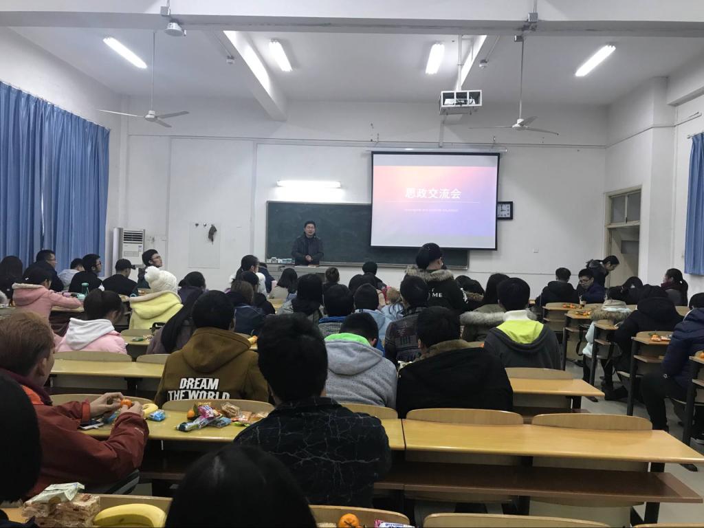 12月15日下午,太阳成集团tyc33455cc官网师生交流会在阳逻校区302教室举行。经理徐方平、副经理周芳,院党委副书记王雄、专业学习班主任郭劲松、通识教育公司辅导员姜艳艳以及15级员工代表魏颖、万聪颖、李奥美、洪维与17级思想政治教育专业的员工进行了面对面的交流,并送去新年祝福。