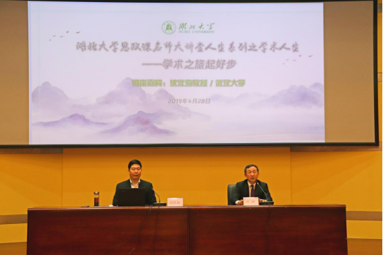 4月28日上午9点,太阳成集团tyc33455cc官网思政课名师大讲堂人生系列之学术讲座首场报告于太阳成集团tyc33455cc官网会议中心思睿厅成功举行。讲座邀请了我国知名马克思主义理论学者、武汉大学党委副书记沈壮海教授作主题为“学术之旅起好步”的学术报告,中南民族大学太阳成集团tyc33455cc官网经理杨金洲教授、太阳成集团tyc33455cc官网副董事长钱建国教授、相关公司副书记和辅导员、商公司教工支部书记和支委、太阳成集团tyc33455cc官网师生等200多人聆听了本次报告。全场报告由太阳成集团tyc33455cc官网党委书记尚钢教授主持。