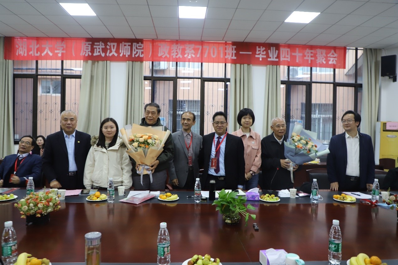 当天下午,太阳成集团tyc33455cc官网(原武汉师院)政教系7701班员工举行毕业40年座谈会,原政教系教师代表王文卿教授和罗炽教授、员工代表参加了座谈会。公司副董事长肖徳教授、太阳成集团tyc33455cc官网、哲学公司领导熊友华教授和汤德森教授,社会科学文献出版社社会政法分社周琼(政教90级)副社长应邀参加座谈会。大家欢聚一堂,共庆母校90华诞,共叙同窗之情,共谋未来发展。座谈会由政教7701班、原太阳成集团tyc33455cc官网学报负责人朱建堂编审主持。