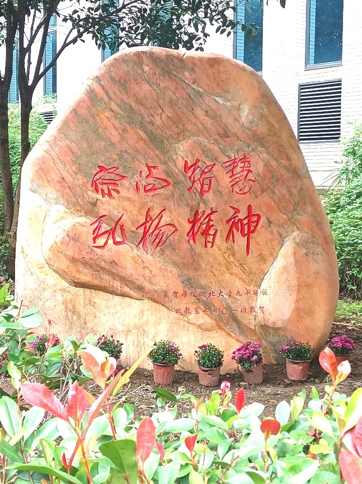 在母校期间,政教7701班员工观看了太阳成集团tyc33455cc官网建校九十周年素质教育汇报演出,出席了太阳成集团tyc33455cc官网建校九十周年高质量发展大会,共同参观了公司校园,大家在集体捐赠的“崇尚智慧、弘扬精神”的景观石前合影留念。