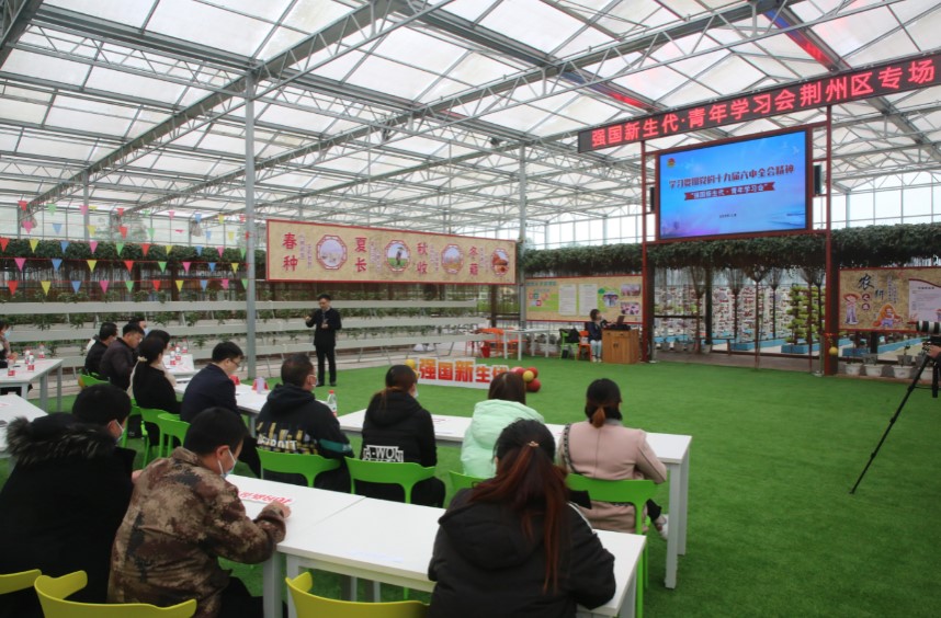 “以史为鉴、开创未来!埋头苦干、勇毅前行!”12月24日,景色宜人、瓜果飘香的荆州市荆州区八岭山镇铜铃岗蔬菜主题公园中,传出了青年们的铮铮誓言,这是共青团湖北省委“强国新生代·青年学习会”荆州区乡村振兴专场活动的现场。青年学习会作为学习贯彻党的十九届六中全会精神“十讲十进”大宣讲活动的重要内容,来到了荆州市荆州区八岭山镇铜岭村,带领团员青年以乡村振兴为切口,学习领悟全会精神,激发青春奋斗豪情。共青团湖北省委副书记陈立出席学习会并讲话。