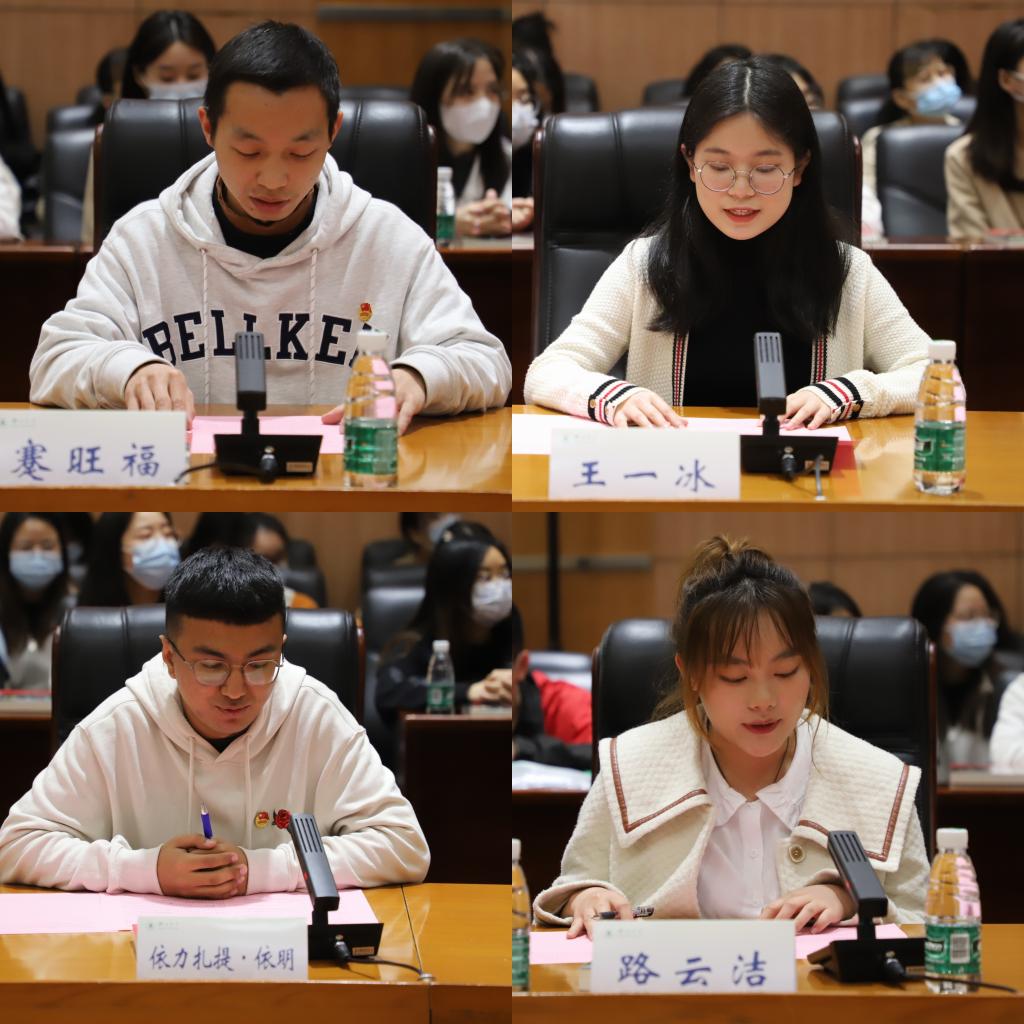 在讲授思政课前,谢红星以副班主任的身份参加了思政1901班班会活动。班级蹇旺福、王一冰、依力扎提·依明、路云洁、覃扬帆5名员工代表分别从“携笔从戎”、“热心公益”、“基层实践”、“辛勤育人”、“阅读经典”等方面进行了主题发言。