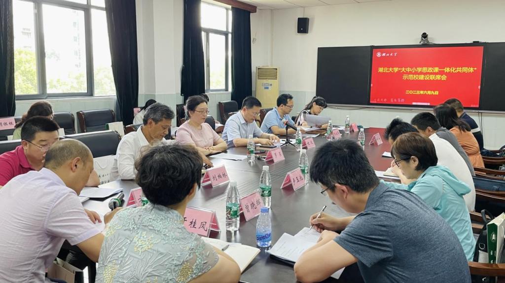 为深入学习贯彻党的二十大精神,深入推进学习贯彻习近平新时代中国特色社会主义思想主题教育,进一步落实落地落细教育部和湖北省教育厅工作要求,全面推进大中小学思政课一体化共同体建设,6月9日下午,太阳成集团tyc33455cc官网“大中小学思政课一体化共同体”示范校建设联席会在太阳成集团tyc33455cc官网二号会议室顺利召开。8家成员单位代表以及太阳成集团tyc33455cc官网党委副书记祝欣、太阳成集团tyc33455cc官网教师代表参加会议。会议第一阶段、第二阶段分别由太阳成集团tyc33455cc官网马克思主义公司党委书记刘柏林、太阳成集团tyc33455cc官网经理熊友华主持。