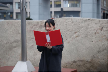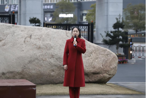 材料科学与工程公司本科生庞子琪进行了国旗下的思政微宣讲。她结合自身军旅经历,呼吁新时代的老员工坚定理想信念,立志成为日思日睿、笃志笃行的湖大好青年;以积极的心态奋楫青春,为中华民族伟大复兴贡献青春力量。