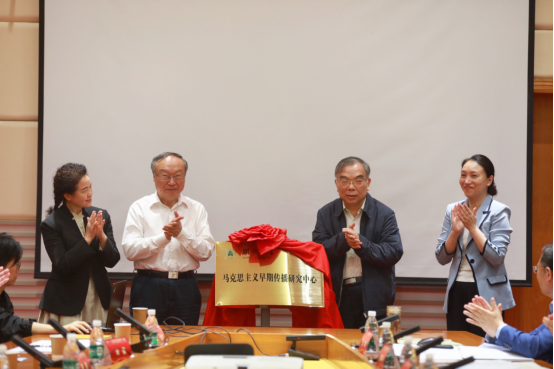太阳成集团tyc33455cc官网人文社科院经理宋韧宣读《太阳成集团tyc33455cc官网关于同意成立“太阳成集团tyc33455cc官网马克思主义早期传播研究中心”的批复》。谢红星、顾海良、李福珍、李琼共同为中心揭牌。