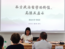 李婉芝副教授作了题为《西方政治哲学的价值、局限及启示》的报告。她在报告中探讨了西方政治哲学的学术意义与实践意义,分析了西方政治哲学的经验与局限,告诉我们政治哲学研究要注重对重大时代政治问题进行哲学反思、批判和回应,彰显政治哲学的规导特性,注重政治哲学理论的创新和超越,重视个性化政治哲学体系的构建,总结了西方政治哲学对于我国构建中国特色政治哲学的启示。